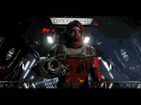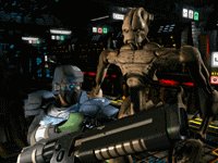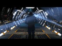 Description: Terran marine and Vasudan in hallway outside bar, no fighting