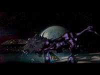 Description: Vausdan and Terran fighting, with Vasudan triumphant over Terran pilot's body